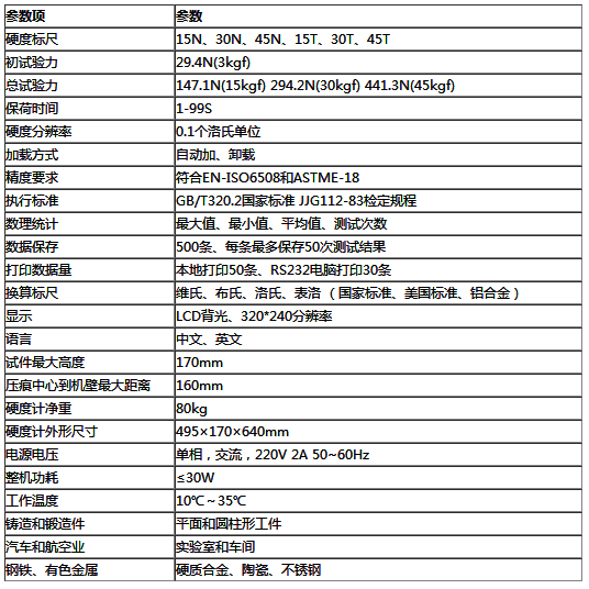 数显表面洛氏硬度计(HRS-45DT)*采用洛氏(ROCKWELL)测量原理*执行标准为: GB/T230.2-2002 《金属洛氏硬度试验 第 2部分: 硬度计的检验与校准》*执行标准:JB/T7409-94《塑料洛氏硬度计技术条件》 *执行标准:欧洲标准 BSEN10109-96《金属材料硬度试验》*执行标准:国际标准 ISO6508.2《金属材料-洛氏硬度试验-硬度计的检验与校准》